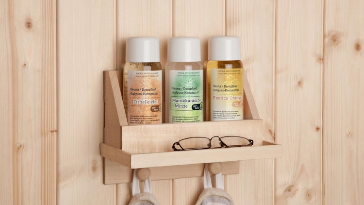 Erleben Sie mit dem Weka Sauna-Aufguss-Konzentrat-Set pure Entspannung. Das Set beinhaltet ein stilvolles Wandregal sowie drei Duftkonzentrate, die Vielfalt und Ordnung in Ihre Sauna bringen.